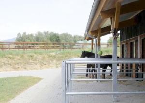 - 3 Außenplätze: zwei Dressurvierecke á 20 x 40 m und 20 x 60 m, ein Springplatz, sowie eine umlaufende Rennbahn