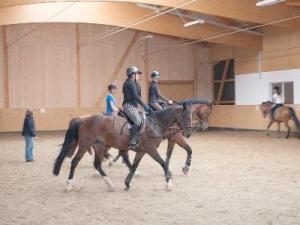 - ein großes, komfortables Casino für gemütliche Aufenthaltszeiten der Reiter mit Blick durch große Panorama-Fenster in beide Reithallen