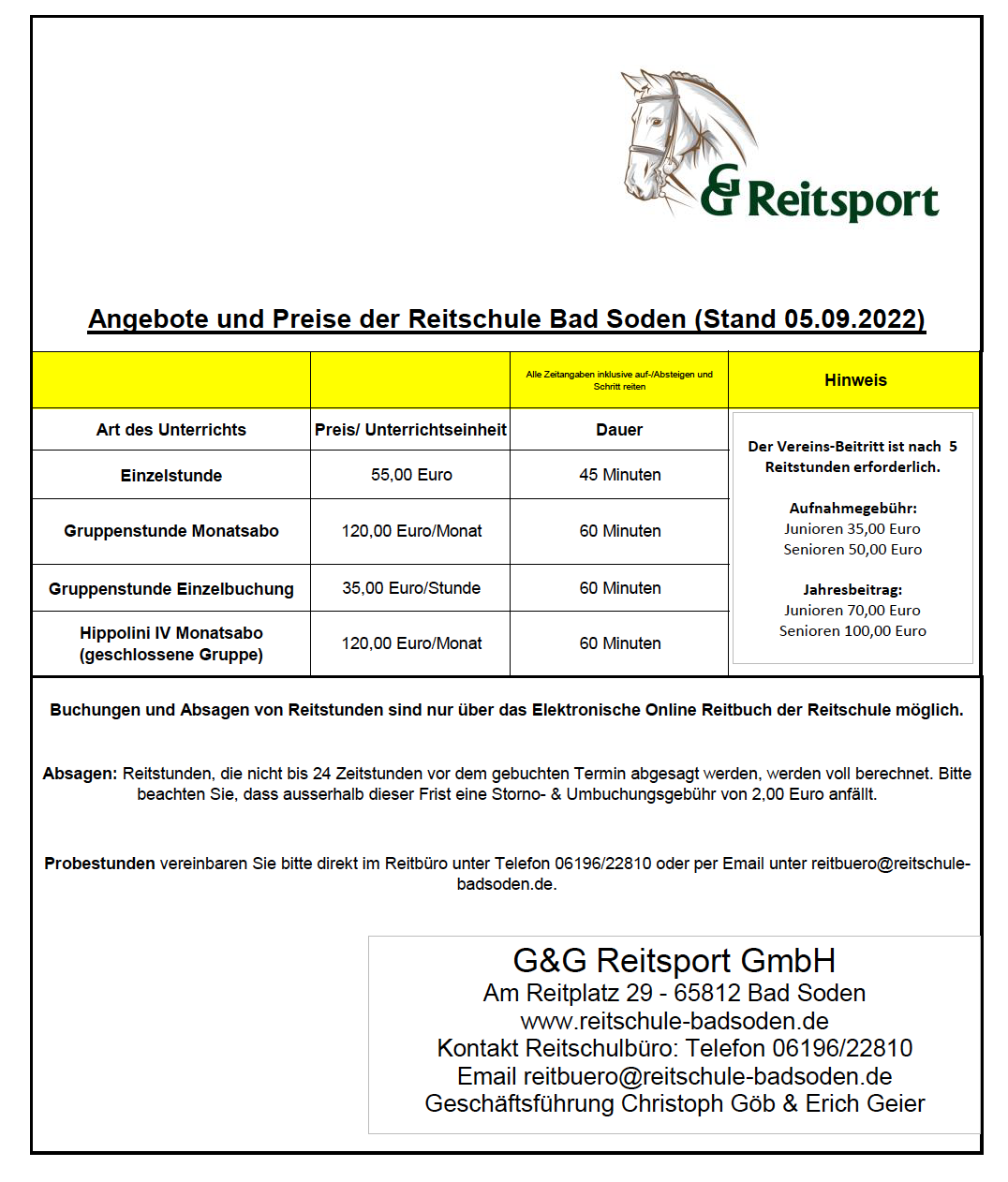 Zeiten & Preise