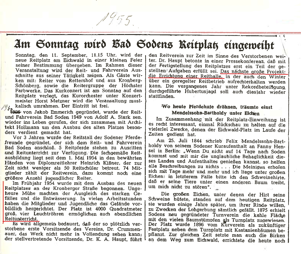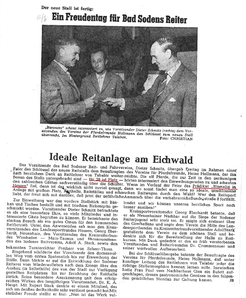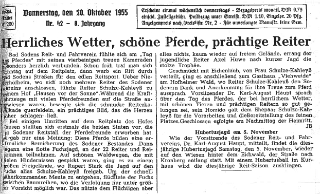 Die Berichterstattung über den Reitverein nimmt ab Mitte der 50er Jahren erheblich zu - Hier ein paar Schlagzeilen aus der Chronik: