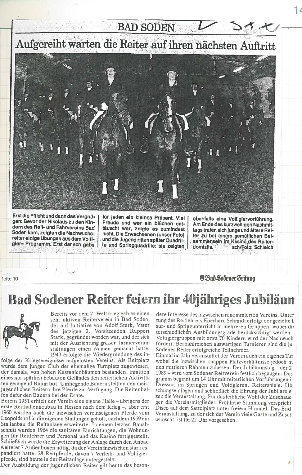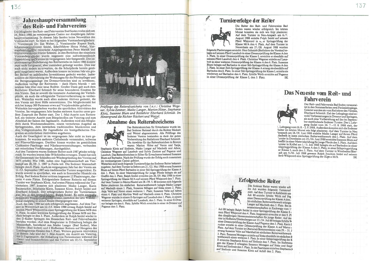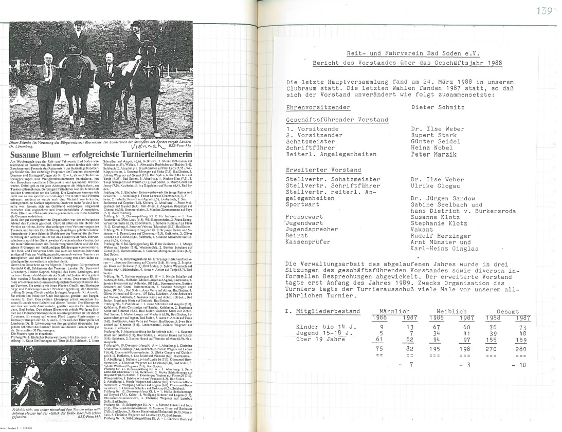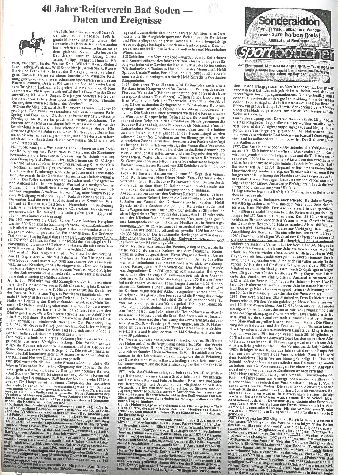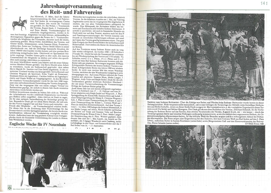 Jubiläumsjahr 1989 - 40 Jahre Reit- und Fahrverein seit Neustart nach dem Krieg: