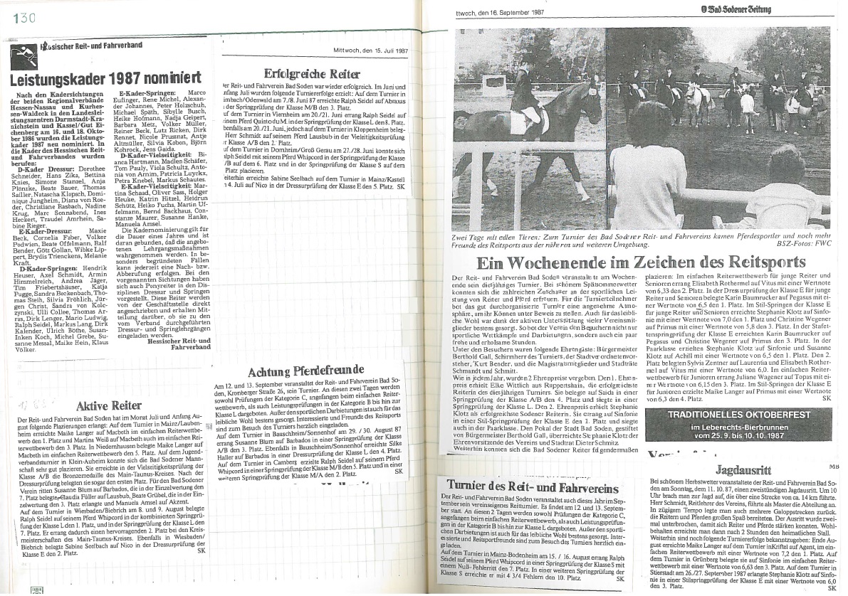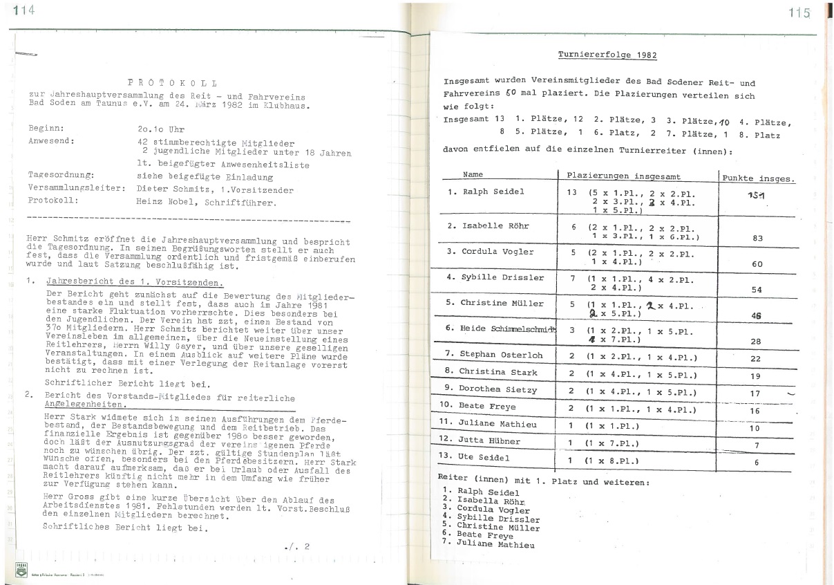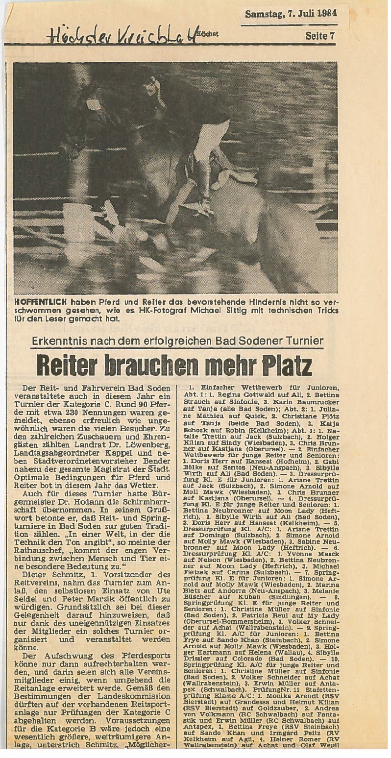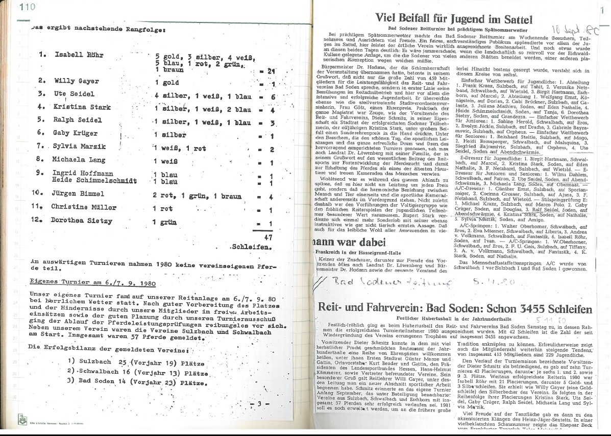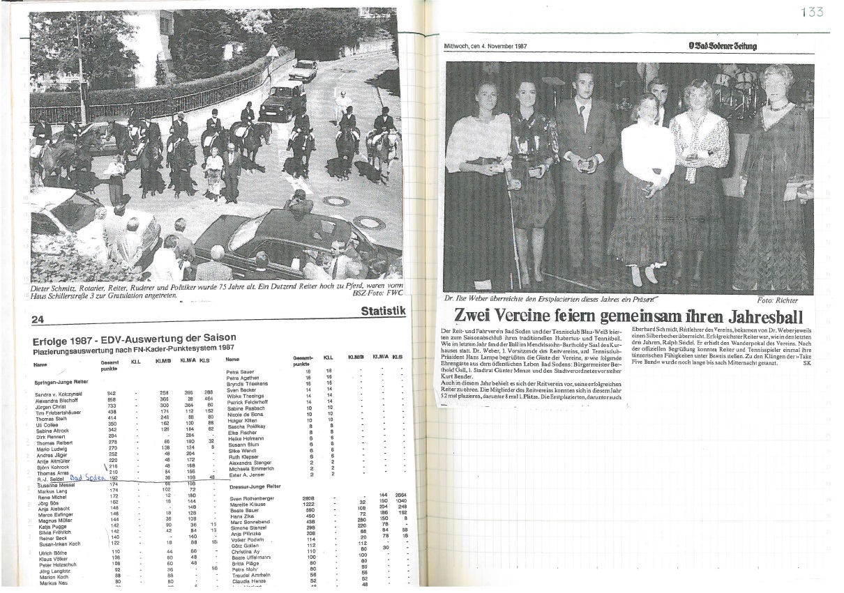 Jubiläumsjahr 1989 - 40 Jahre Reit- und Fahrverein seit Neustart nach dem Krieg: