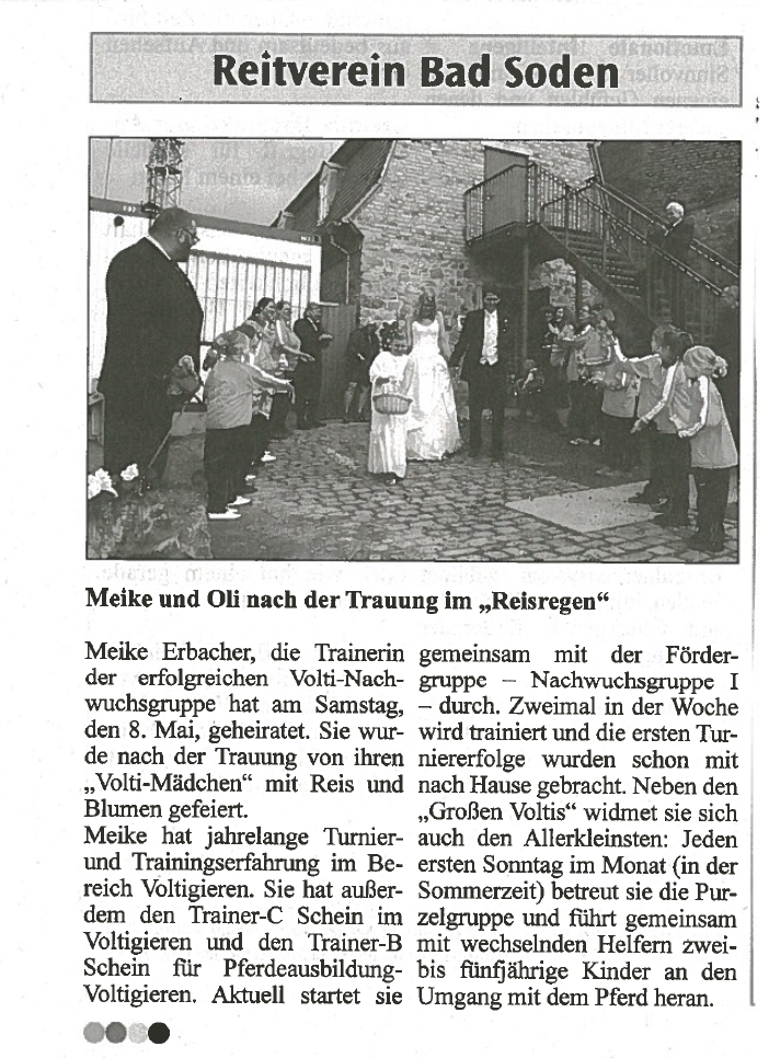Meike Erbacher, die Trainerin der erfolgreichen Volti-Nachwuchsgruppe hat am Samstag, den 8. Mai, geheiratet.