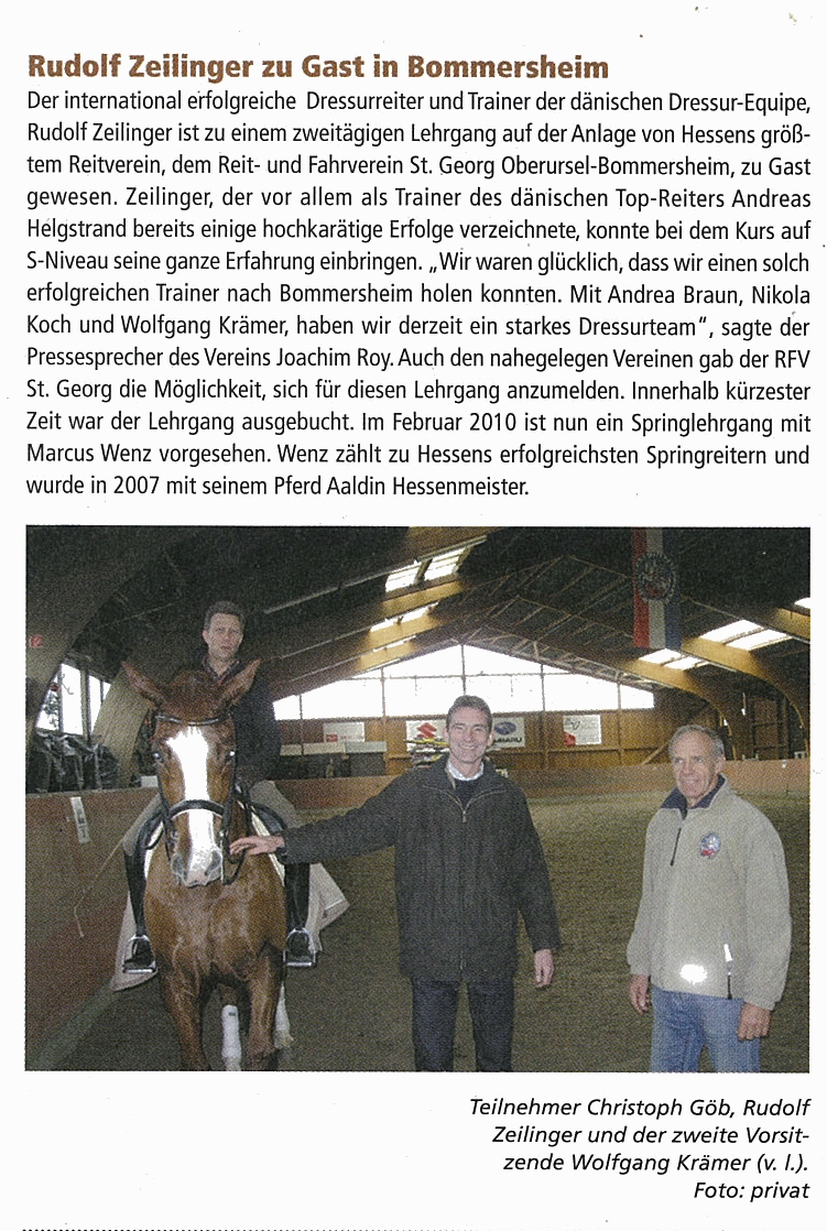 Mit der Unterstützung des Reit- und Fahrvereins St. Georg Oberursel-Bommersheim organisierten Christoph Göb und Erich Geier einen Lehrgang mit Rudolf Zeilinger.